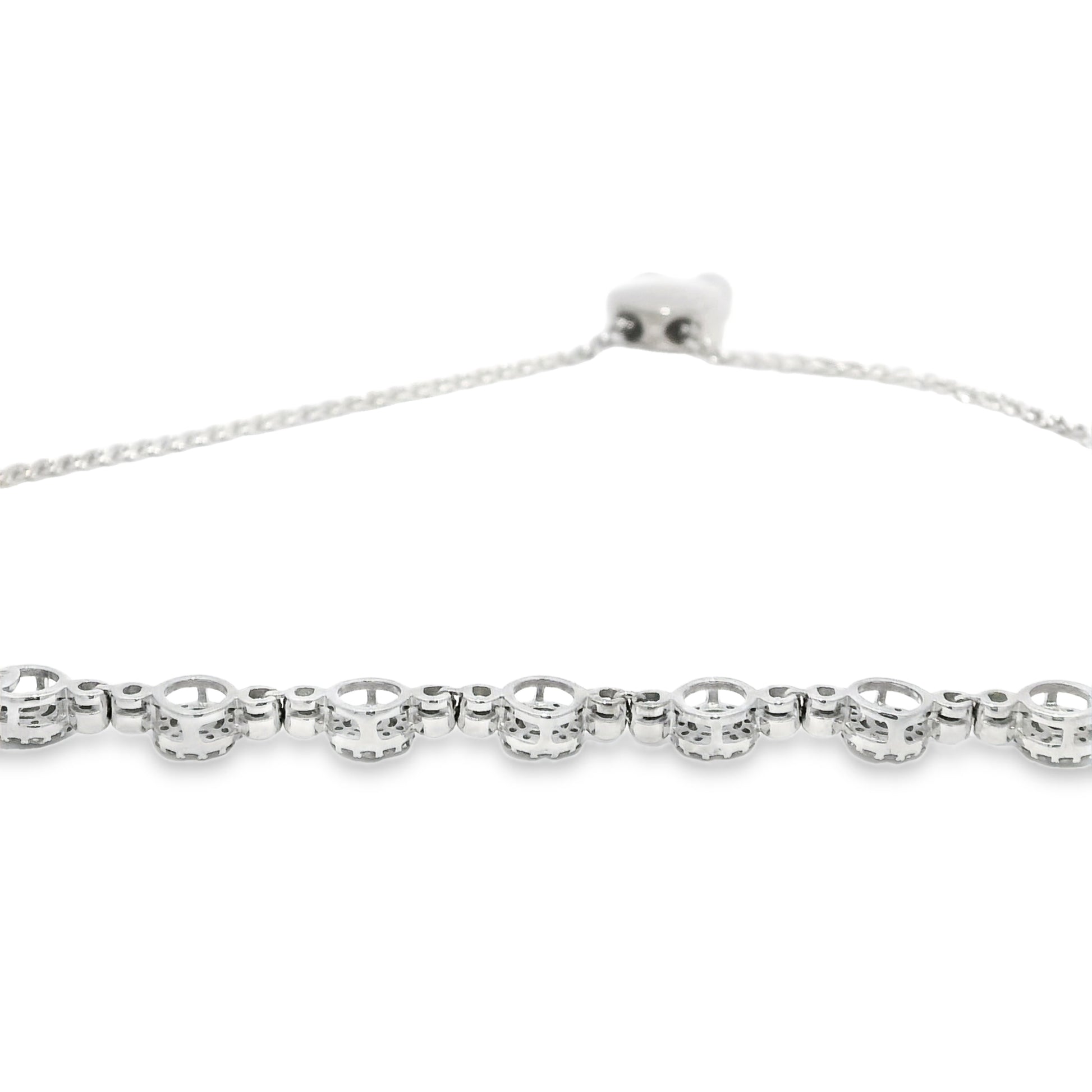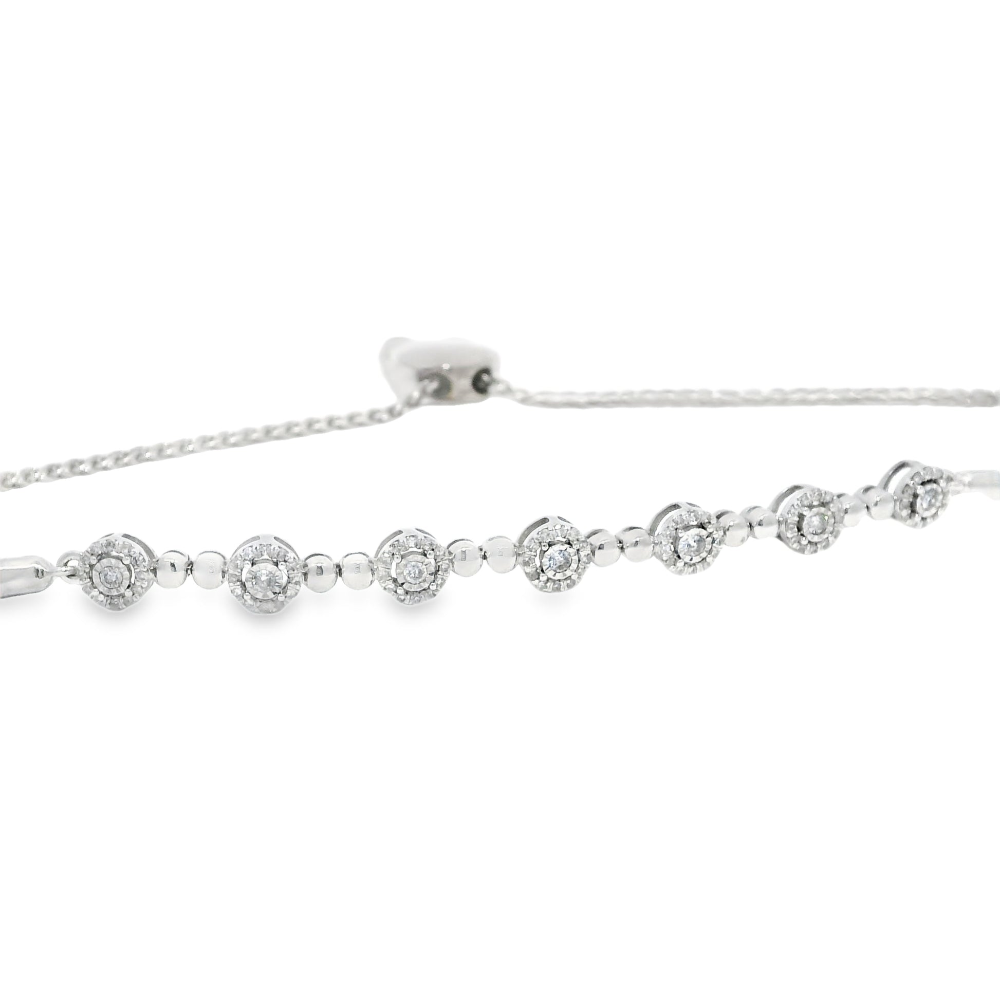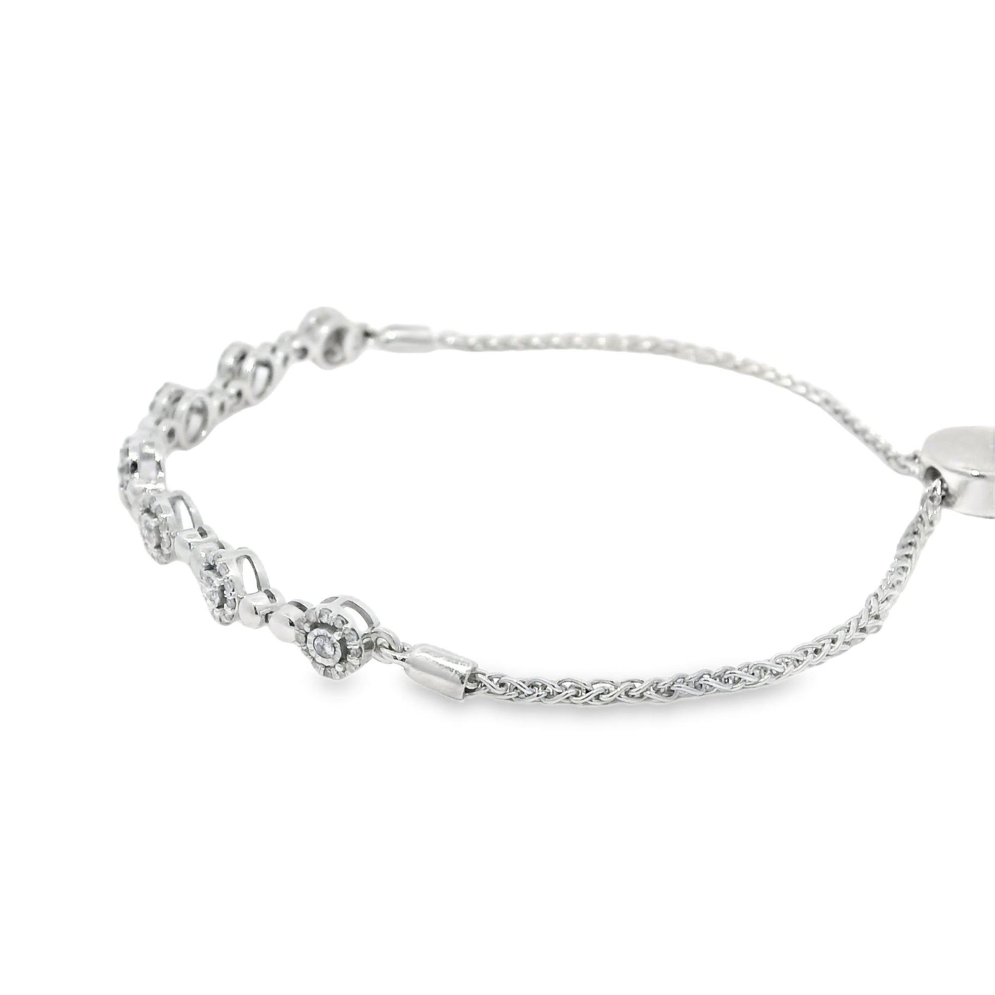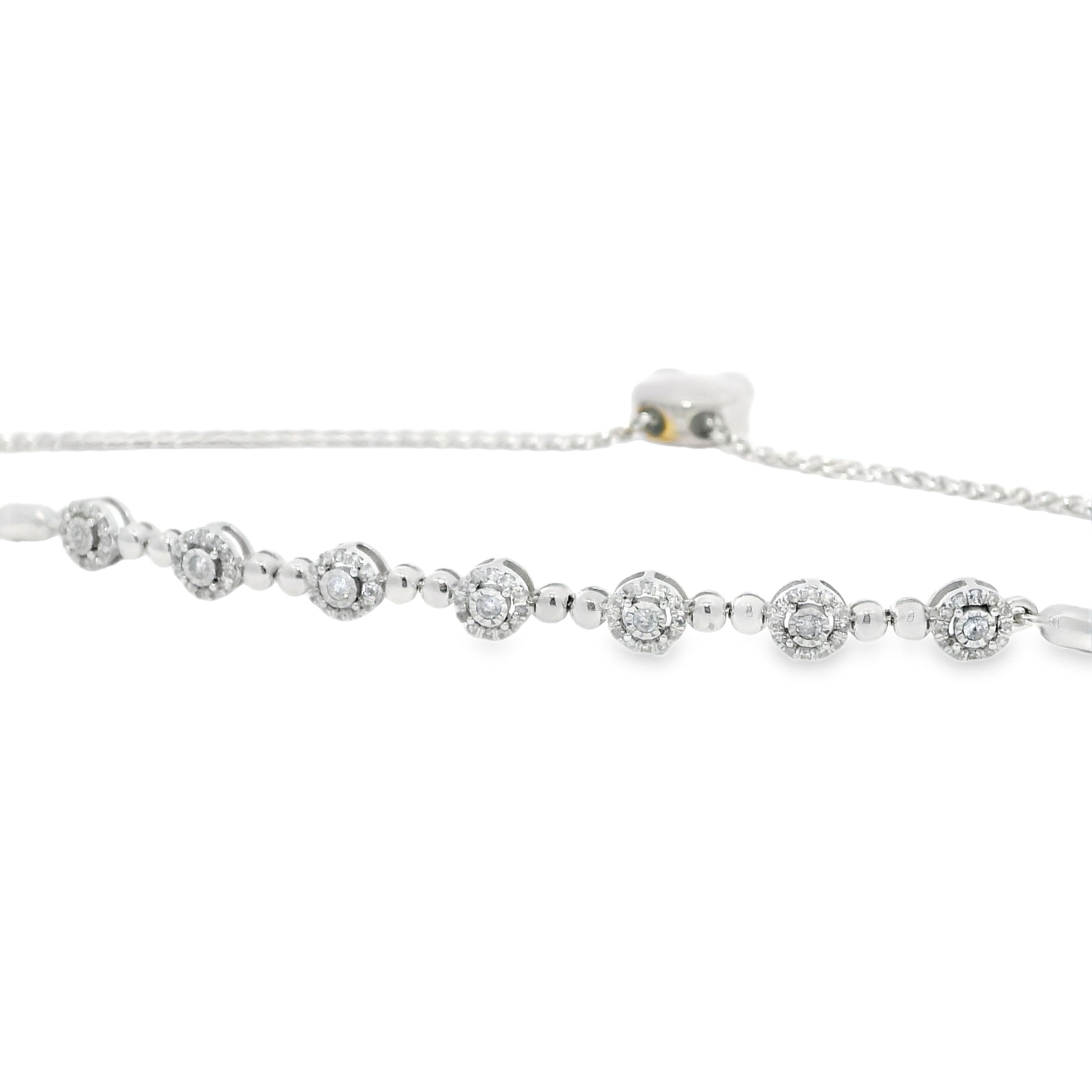 10k White Gold Natural Round Brilliant Diamond Adjustable Station Bracelet