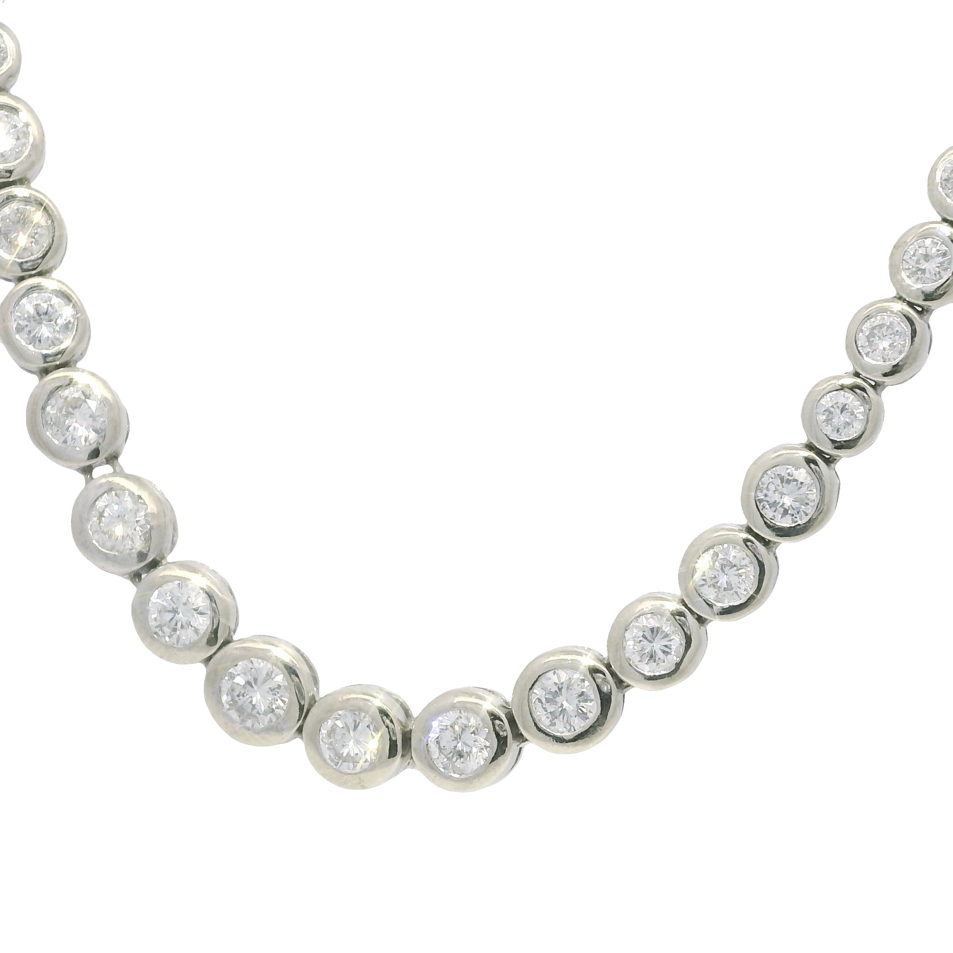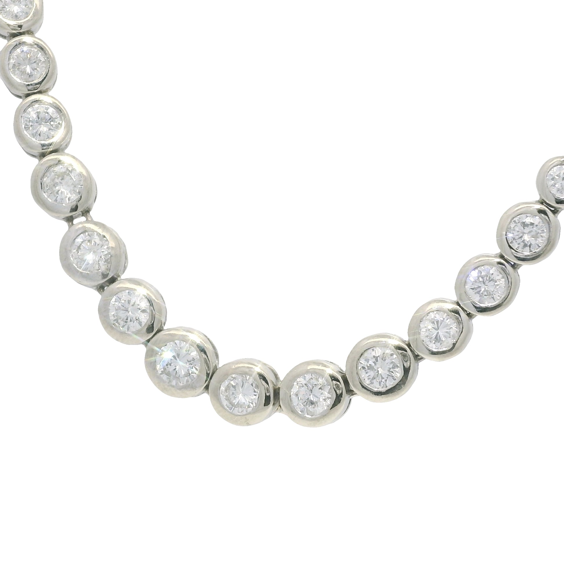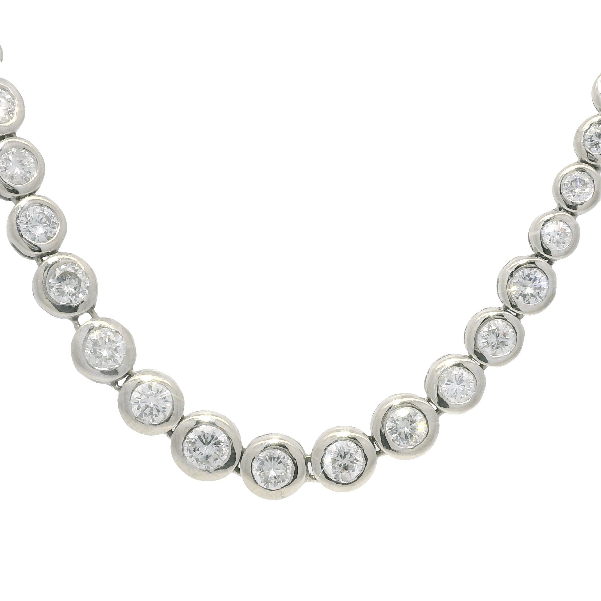 | Diamond Details | There are approximately 6.60 carats of, natural, bezel set, round brilliant-cut, diamonds. The diamonds are graduated and continue around the entire necklace. |