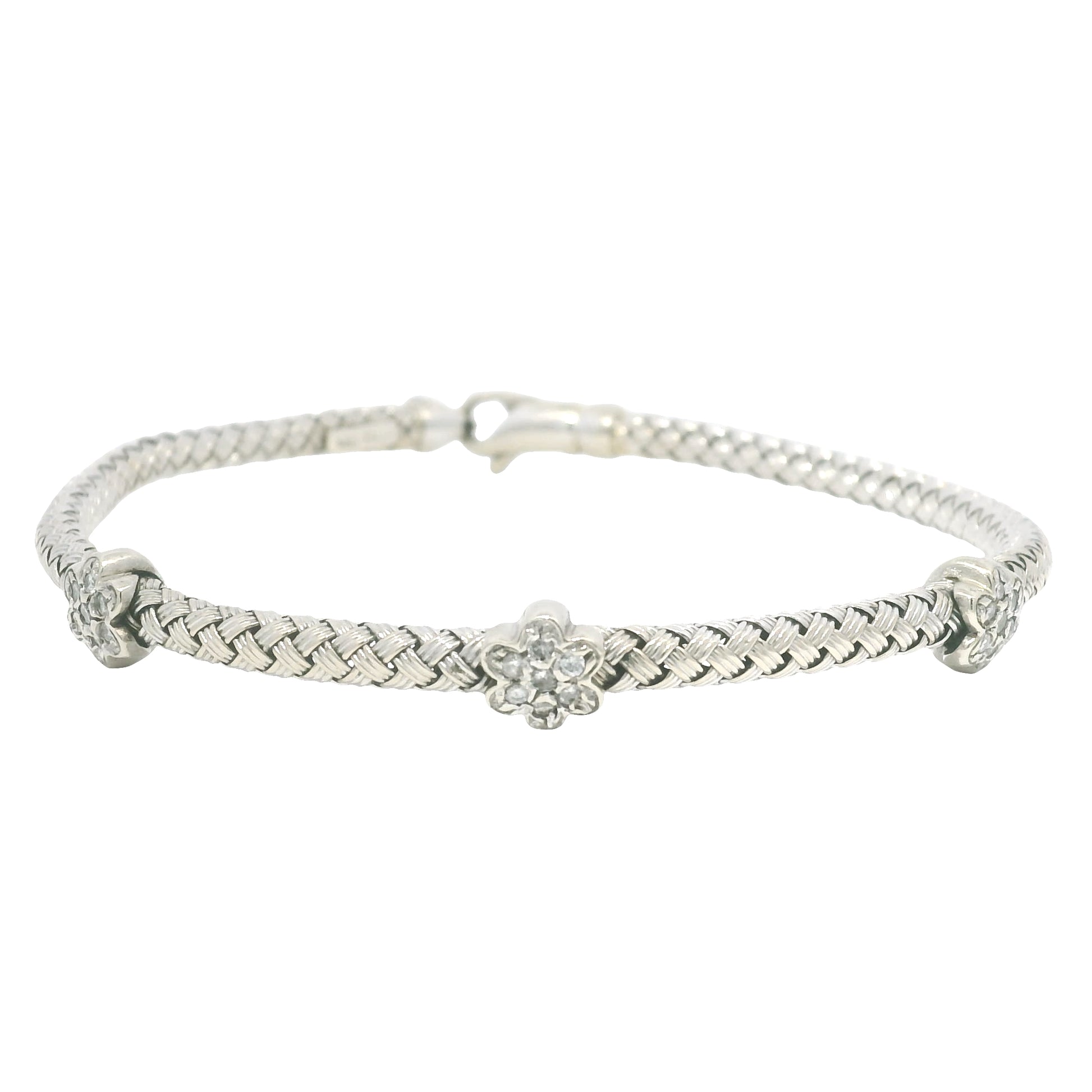 14k White Gold Natural Diamond Flower Flexible Bracelet