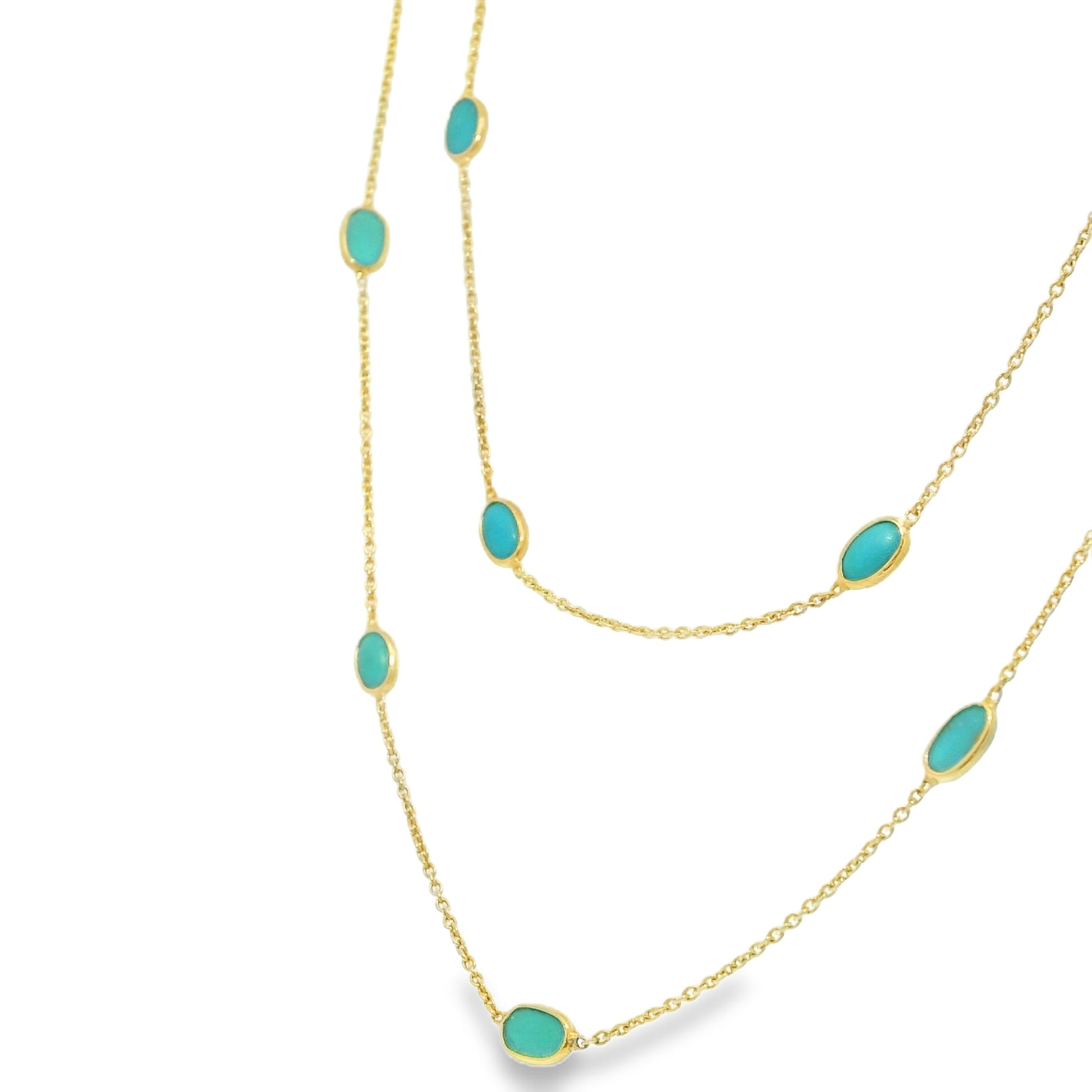 14k Yellow Gold 38" Long Turquoise Bezel Set Station Necklace