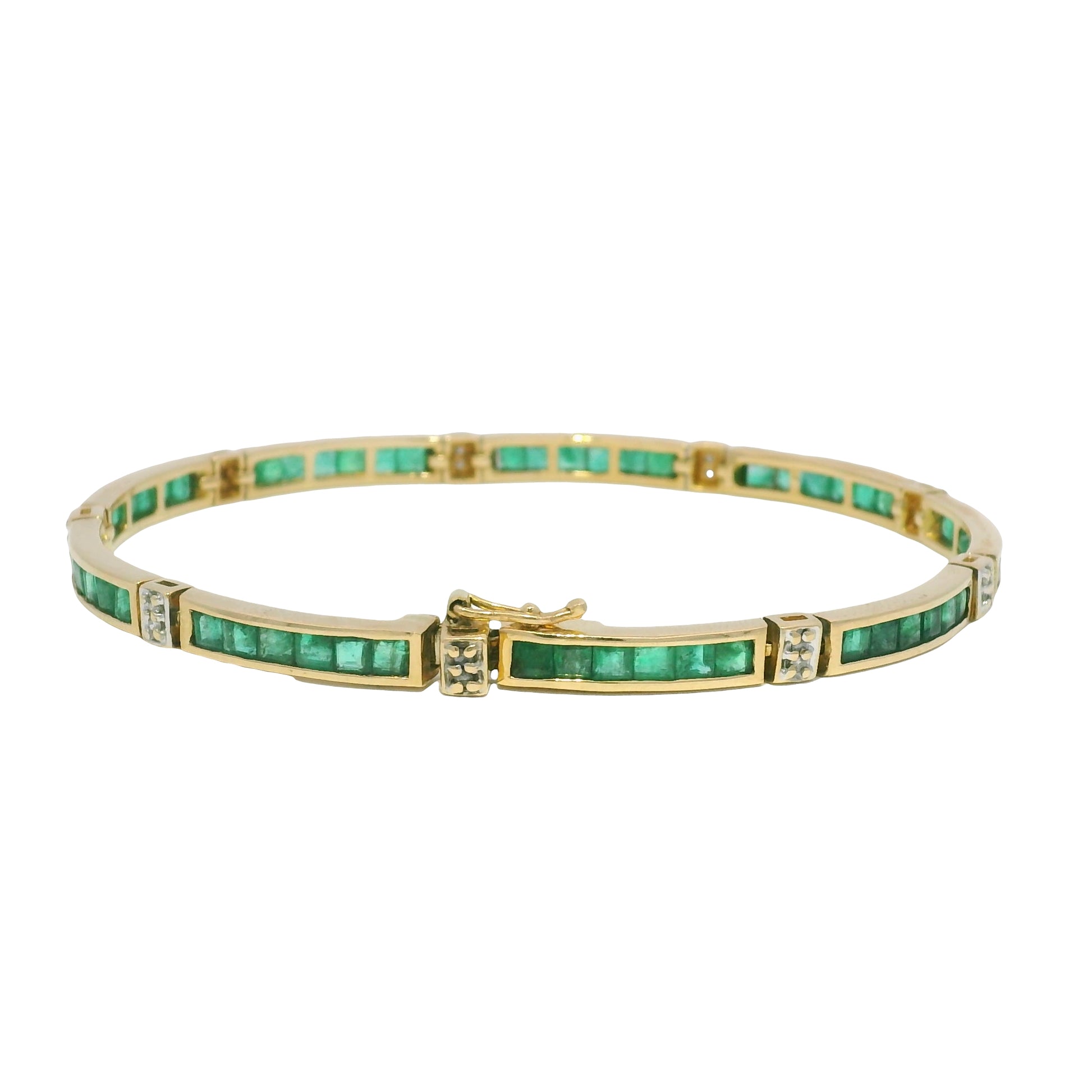 14k Yellow Gold Emerald Channel Set Station Bracelet