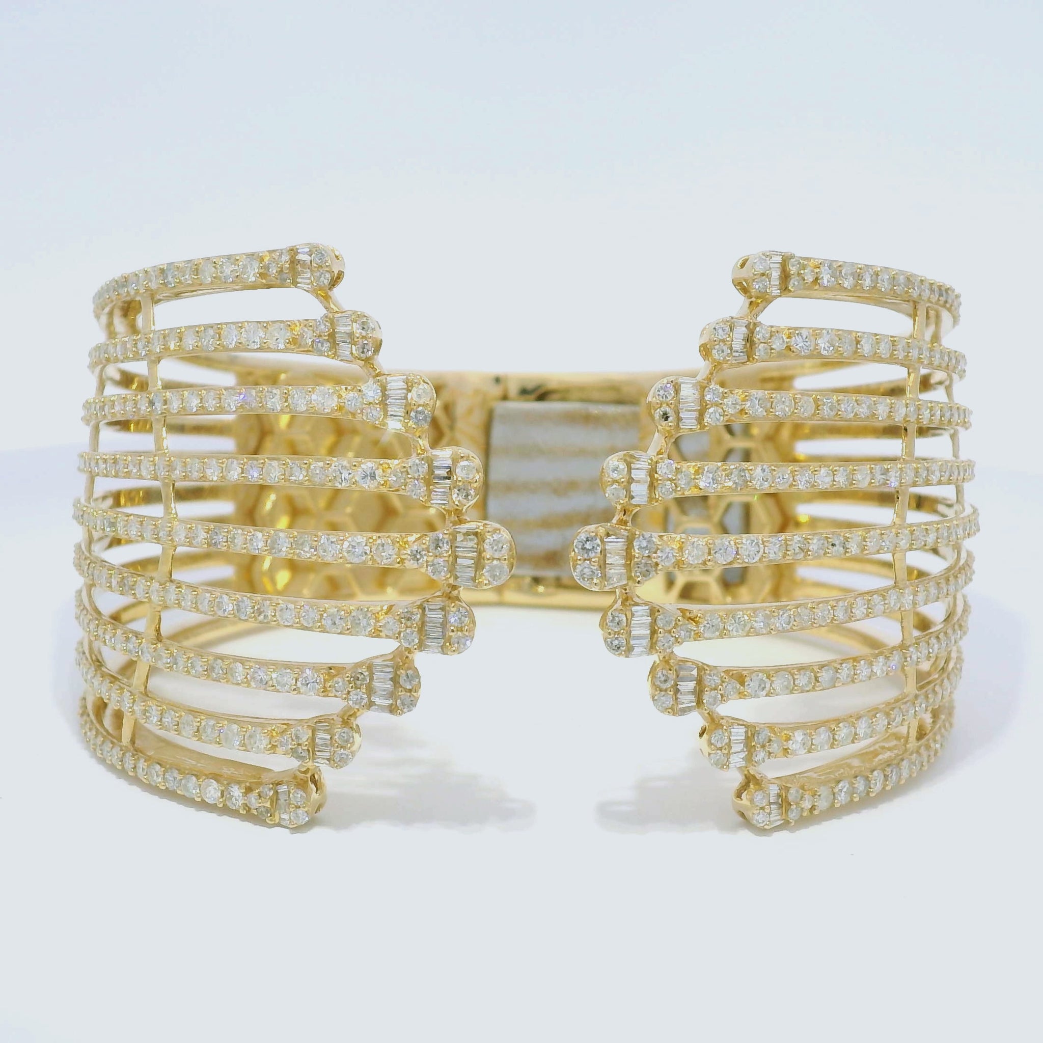 14k Yellow Gold 5.95 Carat Diamond Wide Cuff Bracelet