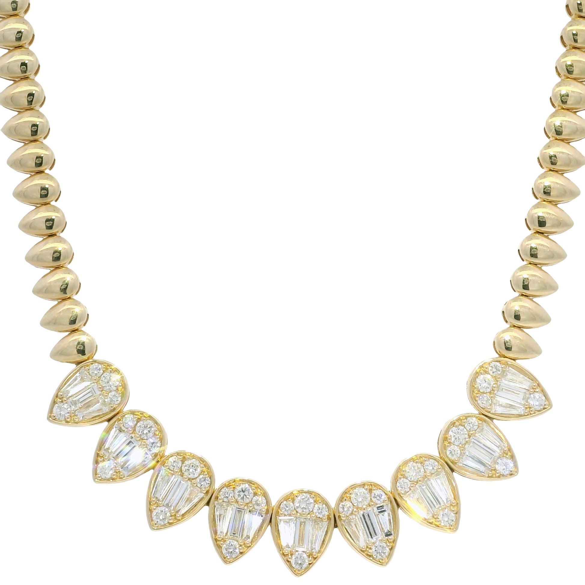 14k Yellow Gold Natural Diamond Spiked Collar Necklace