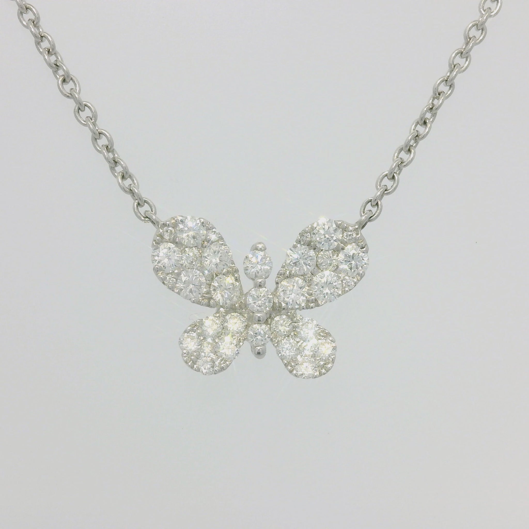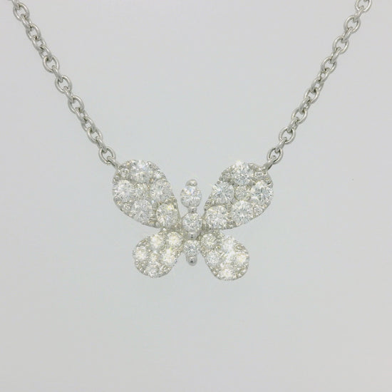 18k White Gold Natural 0.33 Carat Diamond Pave Butterfly Necklace