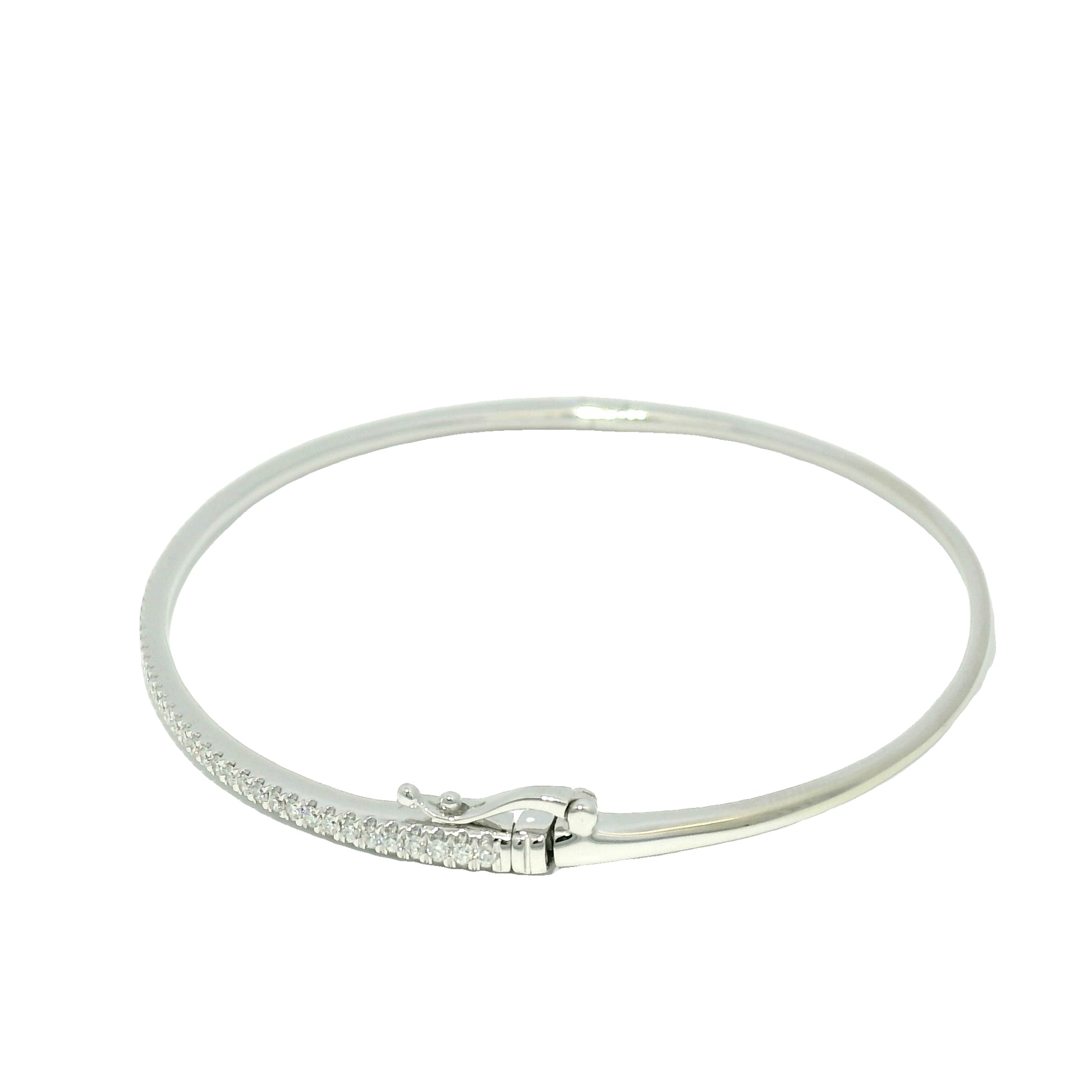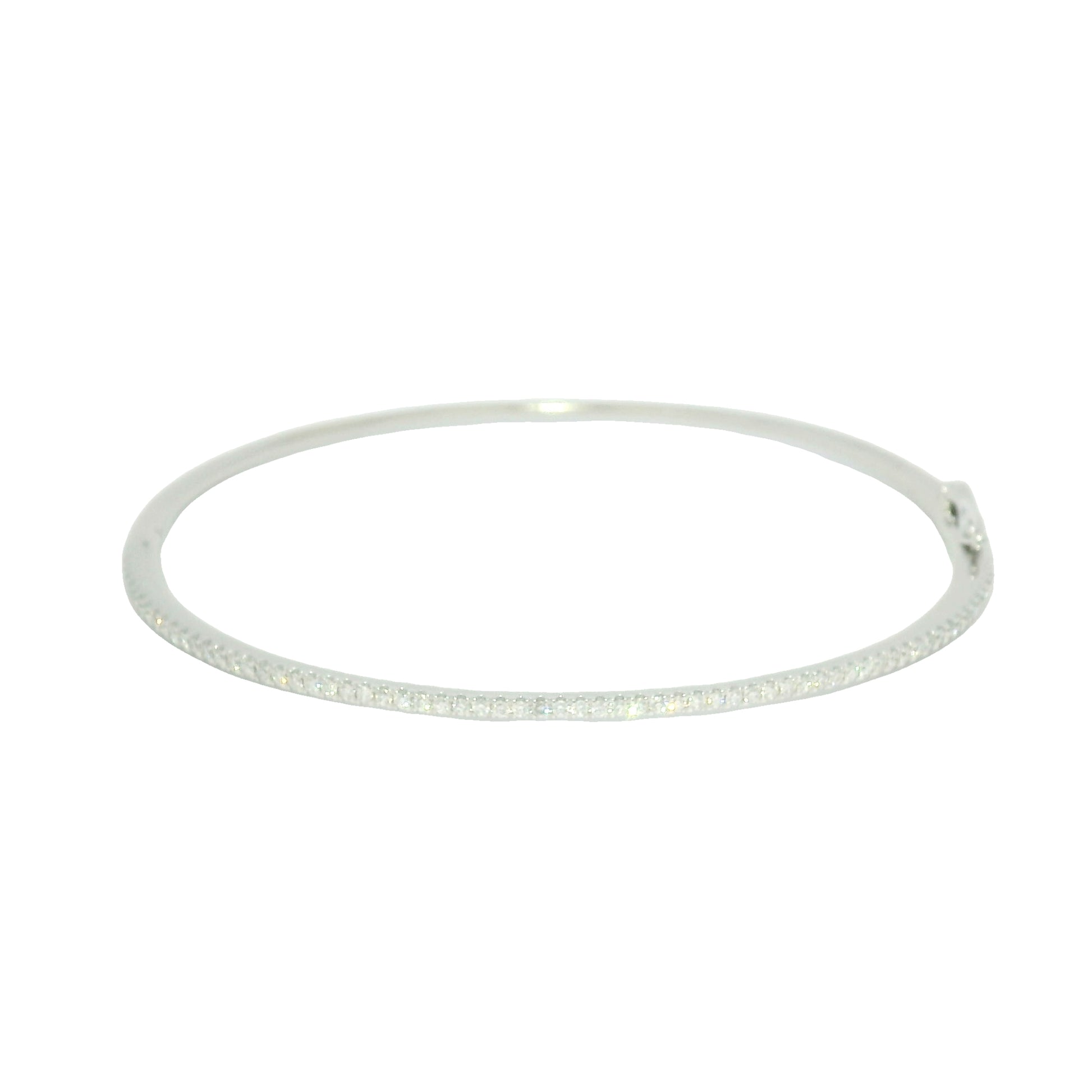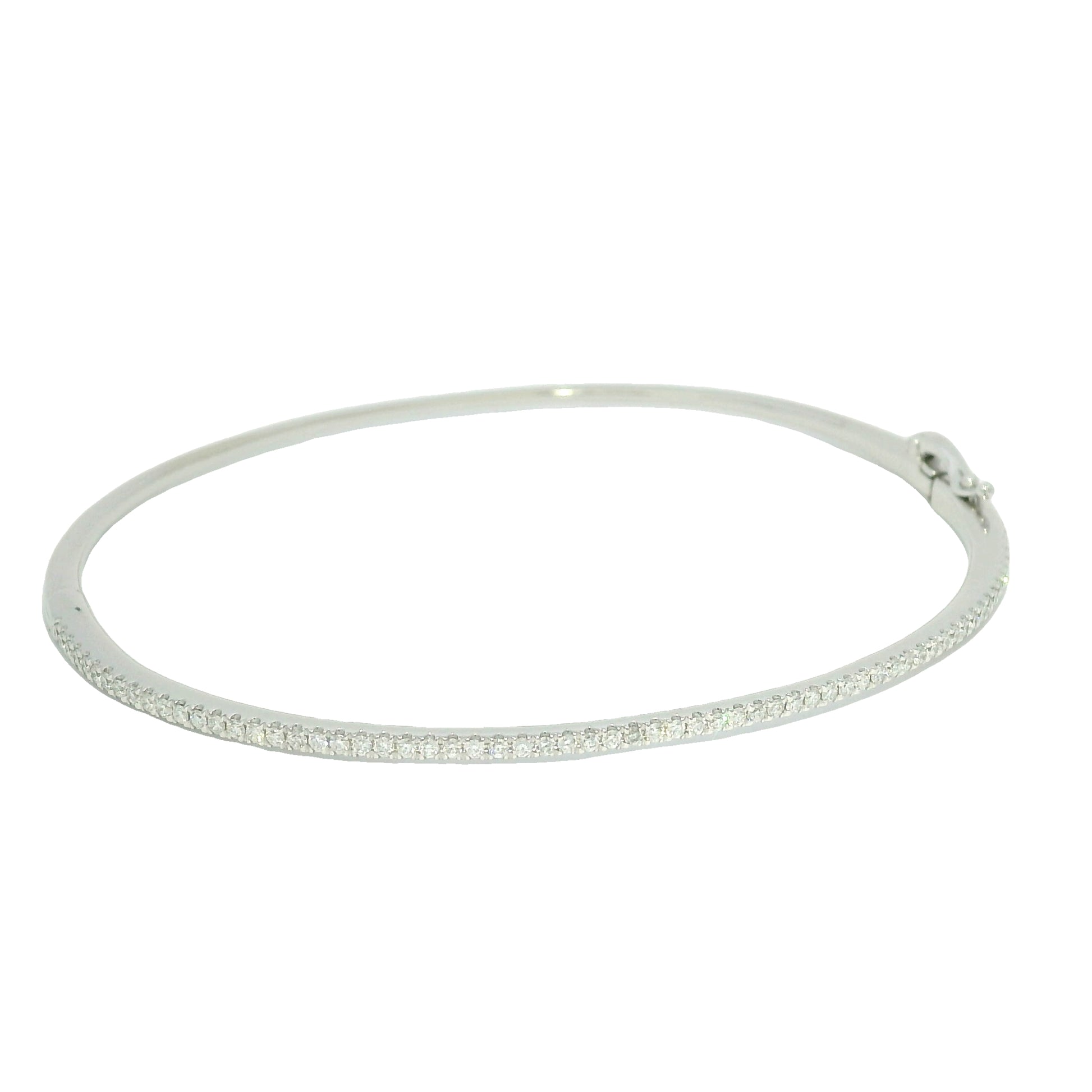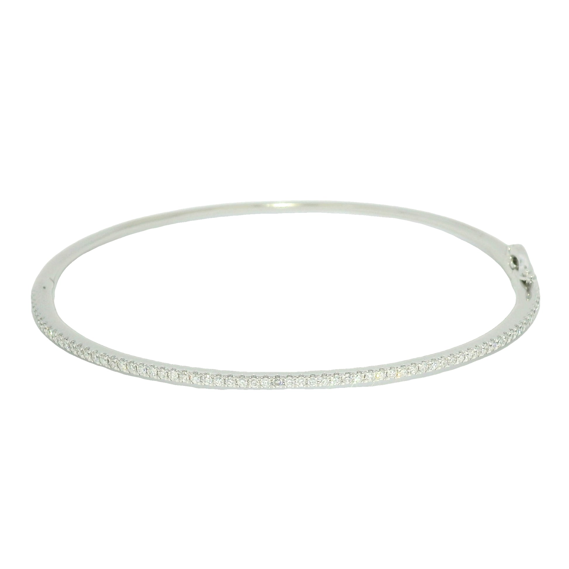 18k White Gold Natural 0.90 Carat Diamond Thin Bangle Bracelet