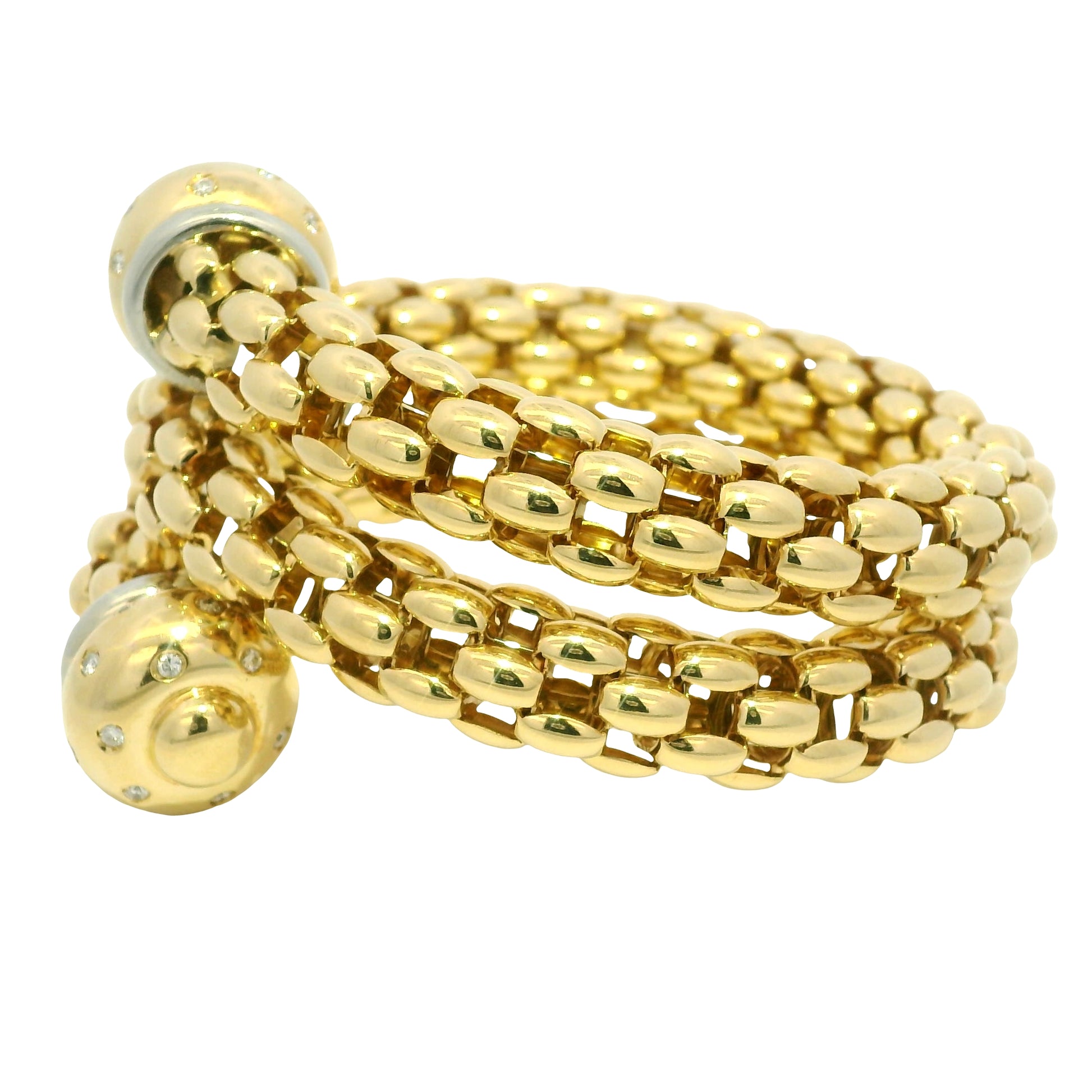 18k Yellow Gold Natural Diamond Textured Link Wrap Bracelet