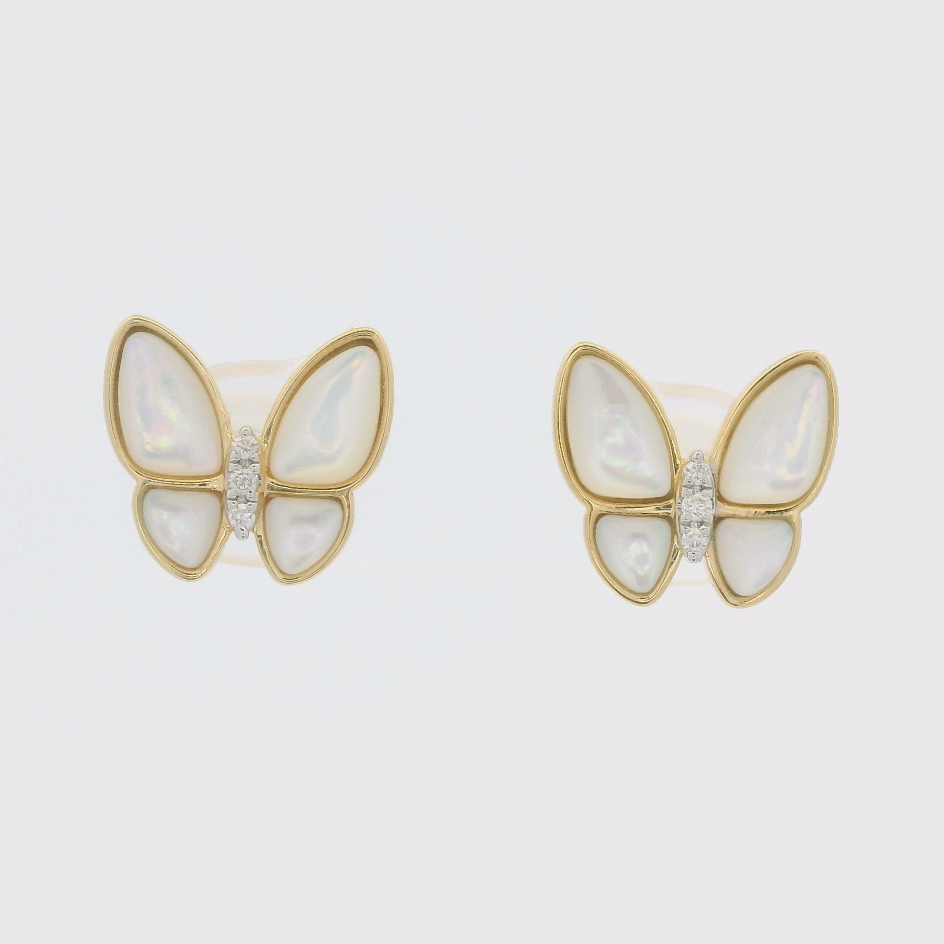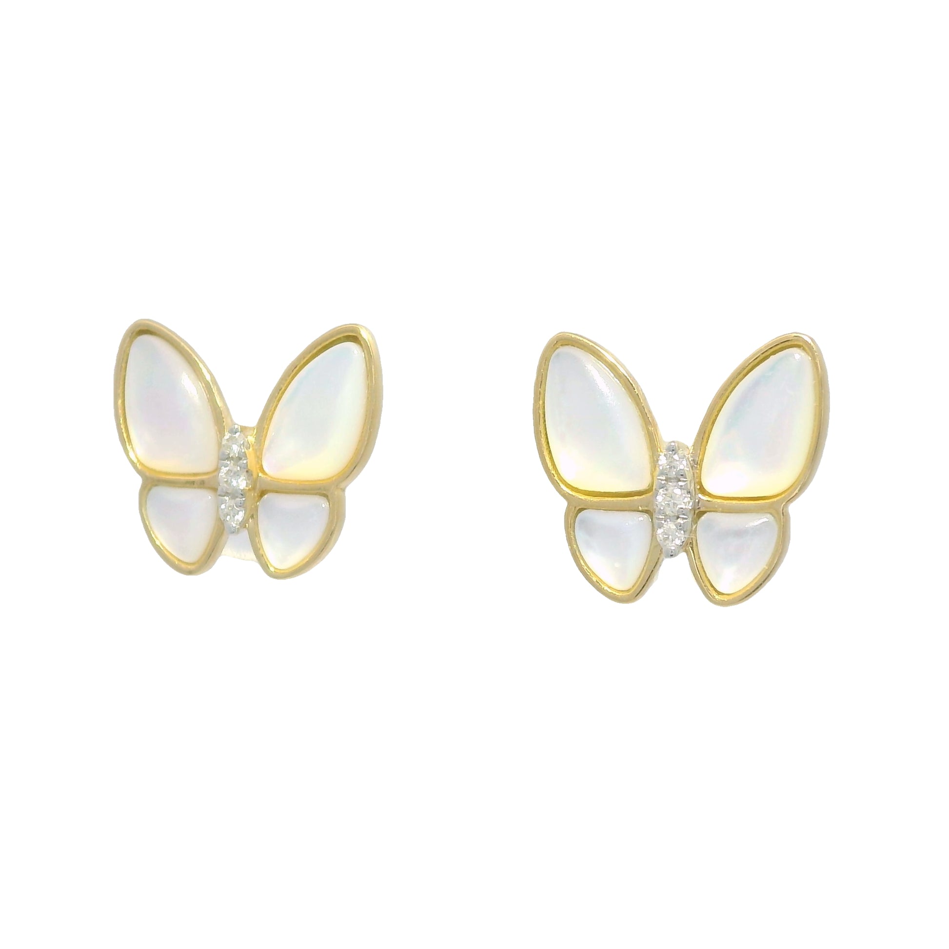 18k Yellow Gold White Mother of Pearl & Diamond Butterfly Stud Earrings