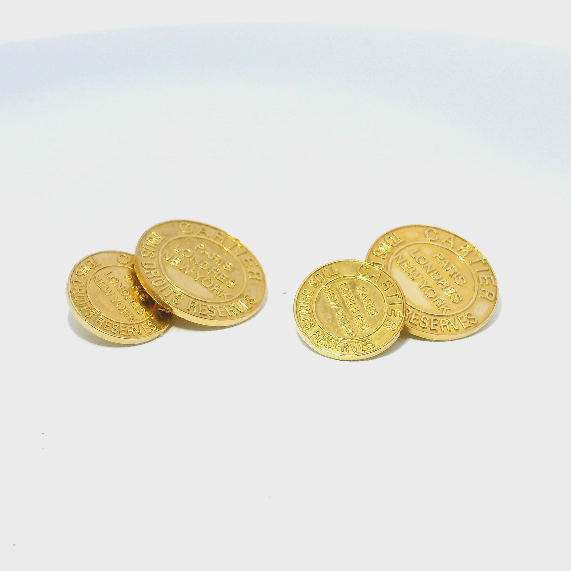 Cartier 18k Yellow Gold 'Tous Droits Reserves Round Cufflinks