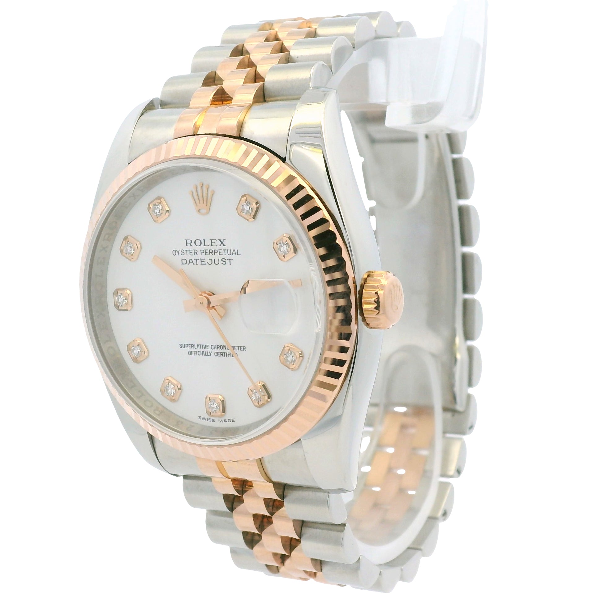 Rolex 116231 Datejust Two-Tone White Diamond Dial Fluted Bezel 36mm Watch